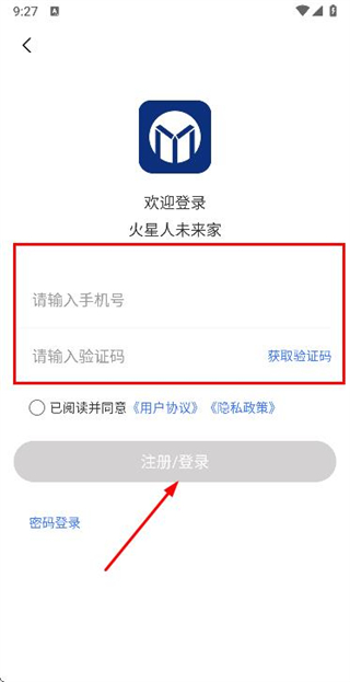 3、在登錄頁(yè)面填寫手機(jī)號(hào)和驗(yàn)證碼,勾選協(xié)議后,點(diǎn)擊登錄完成賬號(hào)登錄操作。