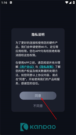 1、在應(yīng)用的隱私說明彈窗中,點(diǎn)擊同意,進(jìn)入我的記錄儀頁面。