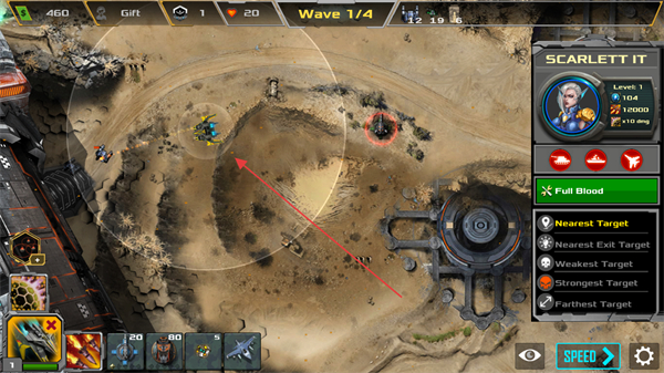 1、在Wave1/4階段,部署攻擊單位至路徑旁,選擇NearestTarget模式,自動(dòng)攻擊靠近的敵方單位。