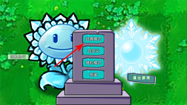 1、點(diǎn)擊經(jīng)典模式選項(xiàng),這是進(jìn)入游戲玩法的關(guān)鍵操作,點(diǎn)擊后可進(jìn)入對(duì)應(yīng)的戰(zhàn)斗配置界面,著手準(zhǔn)備植物陣容的布置。