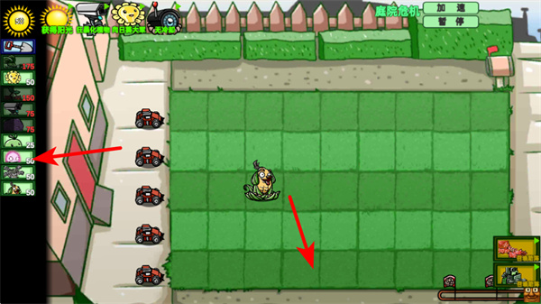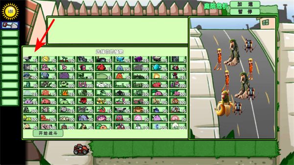 2、選擇對(duì)應(yīng)植物完成陣容配置,這是構(gòu)建防御的基礎(chǔ)操作,選擇不同功能的植物可形成攻防體系,為后續(xù)抵御敵人做準(zhǔn)備。