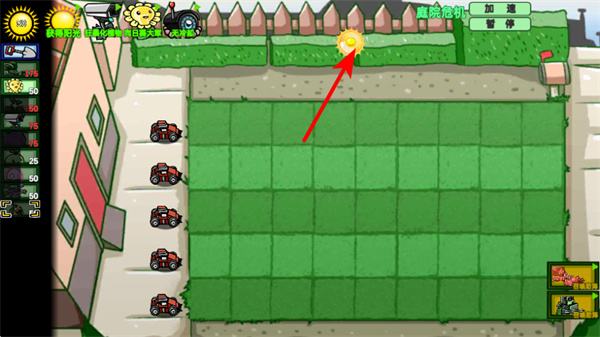 3、點(diǎn)擊場(chǎng)景區(qū)域收集資源,這是維持戰(zhàn)斗的核心操作,收集后可獲得種植植物的能量,保障后續(xù)能持續(xù)補(bǔ)充防御單位。