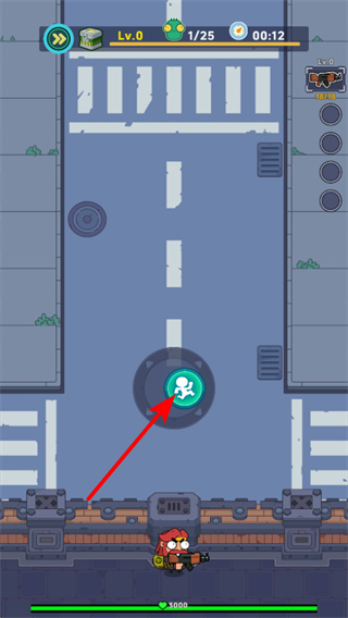 2、點(diǎn)擊操控角色行動(dòng)的按鍵,這是控制角色行為的基礎(chǔ)操作,召喚后可讓助力單位協(xié)助攻擊僵尸,分擔(dān)自身的戰(zhàn)斗壓力,提升生存概率。