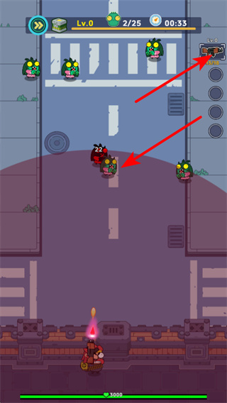 3、切換武器并攻擊僵尸,這是推進(jìn)關(guān)卡的核心操作,切換適合的武器可提升對(duì)僵尸的傷害效率,快速清理靠近的敵方單位,保障自身安全。