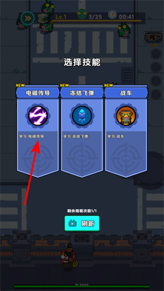 4、選擇對(duì)應(yīng)技能強(qiáng)化戰(zhàn)力,這是提升生存能力的重要操作,選擇戰(zhàn)局的技能,獲得范圍攻擊、增益效果等優(yōu)勢(shì),更好地應(yīng)對(duì)密集的僵尸波次。