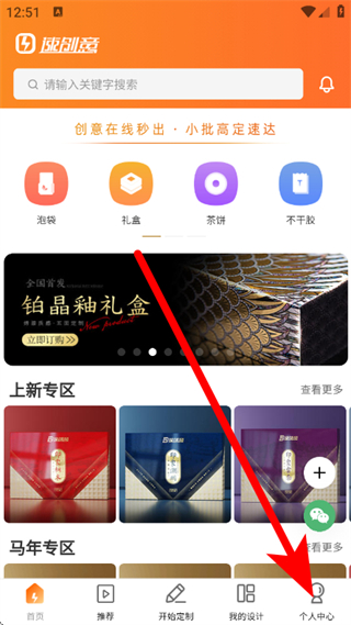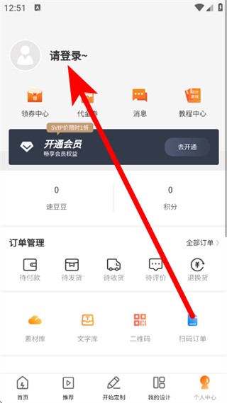 1、打開速創(chuàng)意,點擊底部的個人中心,進入個人中心頁面。