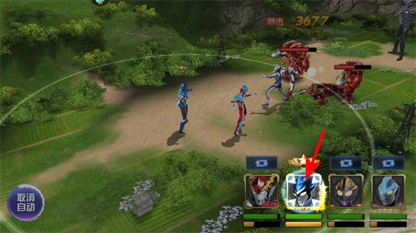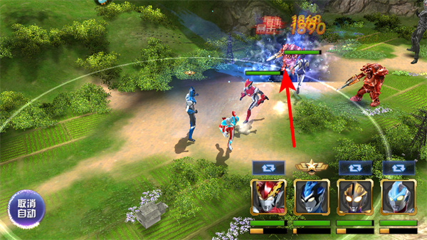 2、游戲中依照箭頭指引鎖定敵方目標(biāo),角色將自動對其發(fā)起攻擊,推進基礎(chǔ)操作,攻擊削減敵方血量。