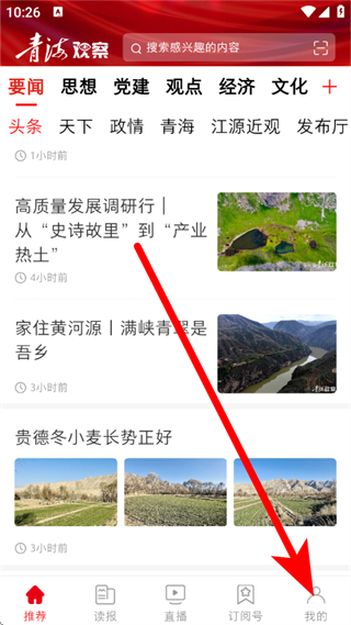 1、打開青海觀察,點擊底部的我的,進入我的頁面。