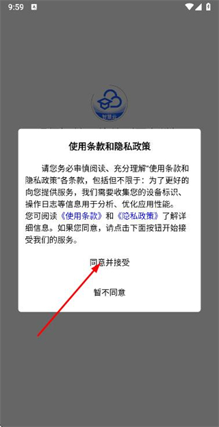 1、在使用協(xié)議隱私政策彈窗中點擊同意并接受按鈕,進入登錄頁面。