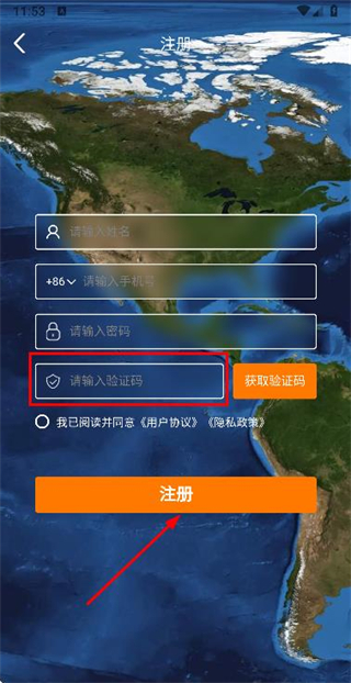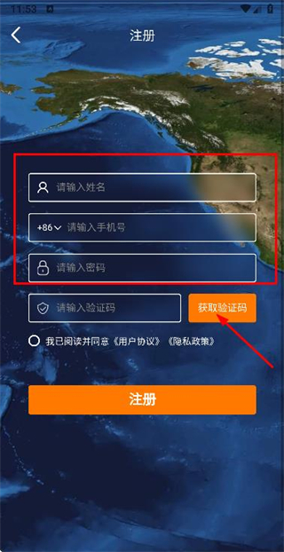 2、在注冊(cè)賬號(hào)頁面填寫信息后,點(diǎn)擊獲取驗(yàn)證碼。