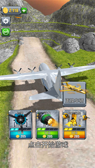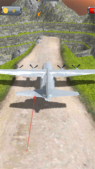 1、操控飛機(jī)在山間道路滑行,保持飛行軌跡穩(wěn)定,開始推進(jìn)距離積累金幣。