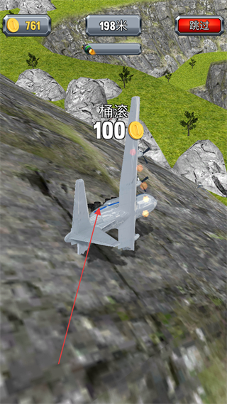 3、觸發(fā)桶滾動作,獲得100金幣獎勵,持續(xù)滑行至198米。