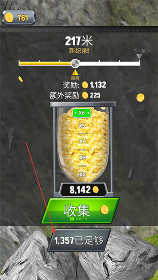 4、滑行至217米達(dá)成新紀(jì)錄,點(diǎn)擊收集獲取獎勵,包含1132獎勵及額外獎勵。