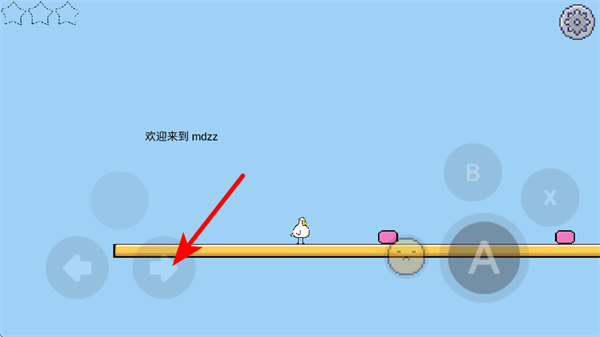 1、進入游戲界面后,操控角色移動到對應(yīng)位置,點擊按鍵控制角色在平臺移動,這是推進關(guān)卡的基礎(chǔ)操作。
