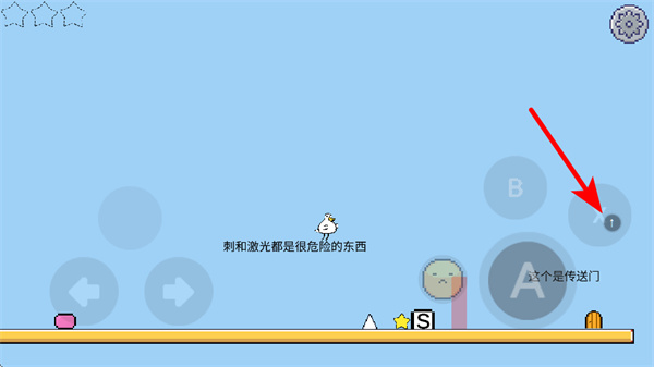 4、在新關(guān)卡中,留意提示信息,避開刺和激光這類危險元素,同時點擊右側(cè)x按鍵輔助跳動,保障角色安全推進關(guān)卡。