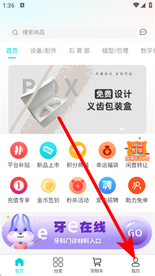1、打開愛齒商城,點擊底部的我的,進入我的頁面。