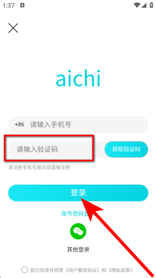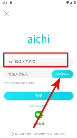 3、在登錄頁面,輸入手機號,點擊獲取驗證碼。