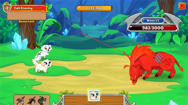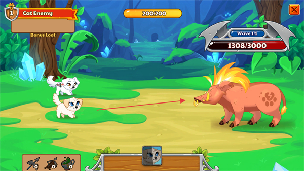 1、操控貓咪單位攻擊敵方野豬,削減其血量,推進(jìn)Wave1/1的戰(zhàn)斗進(jìn)程。