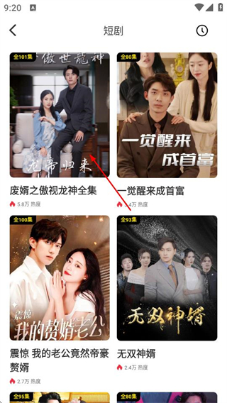 2、在短劇頁面,點擊目標(biāo)短劇條目,進入該短劇的播放頁面。