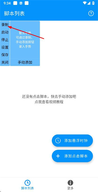 2、在操作選項菜單中點擊錄制選項,開始錄入腳本手勢。