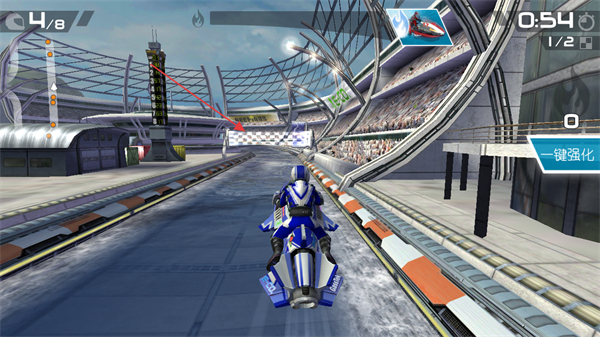 4、比賽過(guò)程中需要往方格旗標(biāo)識(shí)的終點(diǎn)推進(jìn),當(dāng)前排名4/8,保持賽艇行駛路線以提升排名,獲取更優(yōu)賽事獎(jiǎng)勵(lì)。