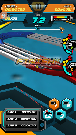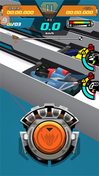 3、進入比賽界面后,點擊界面中的橙色按鈕,即可啟動四驅(qū)車比賽,開啟當前回合的競速流程。