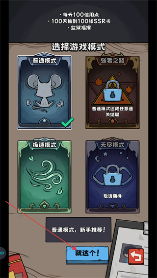 1、在選擇游戲模式界面,新手推薦選擇普通模式,點(diǎn)擊界面下方的就這個(gè)按鈕,即可進(jìn)入游戲的對(duì)應(yīng)模式。