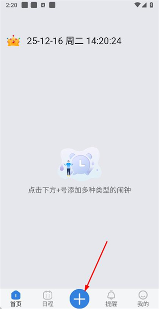 1、在首頁點擊底部的加號按鈕,進入鬧鐘類型選擇頁面。