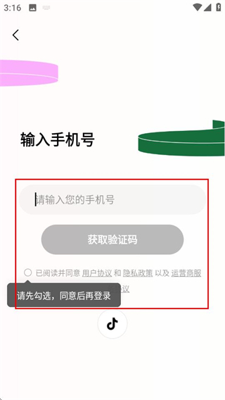 3、在登錄頁(yè)面,填寫信息并勾選協(xié)議后,即可完成賬號(hào)登錄。
