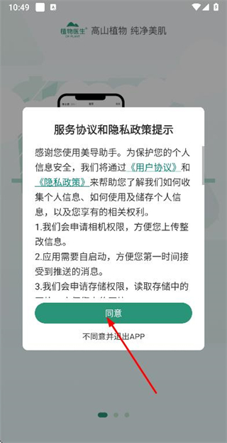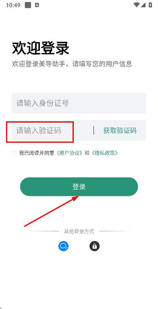 1、在使用協(xié)議隱私政策彈窗中點(diǎn)擊同意按鈕,進(jìn)入登錄頁面。