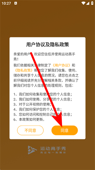 1、打開運動高手秀,在彈窗中點擊同意,進入登錄選擇頁面。