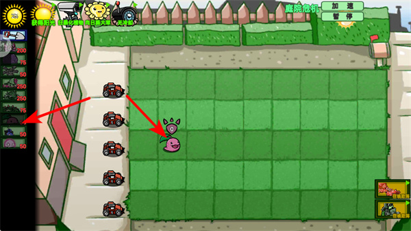 防線失守時可啟用花園推車,清除沿途所有僵尸以挽回局勢,雖會降低最終獎勵收益,但為玩家提供應(yīng)急保障,減少因失誤導(dǎo)致的失敗,提升游玩體驗。