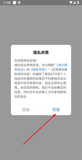 1、在使用協(xié)議隱私政策彈窗中點(diǎn)擊同意按鈕,進(jìn)入登錄頁面。
