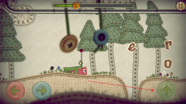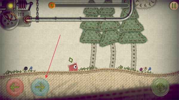 1、操控紅色小怪物向右移動(dòng)點(diǎn)擊右側(cè)按鈕,推進(jìn)場景探索。