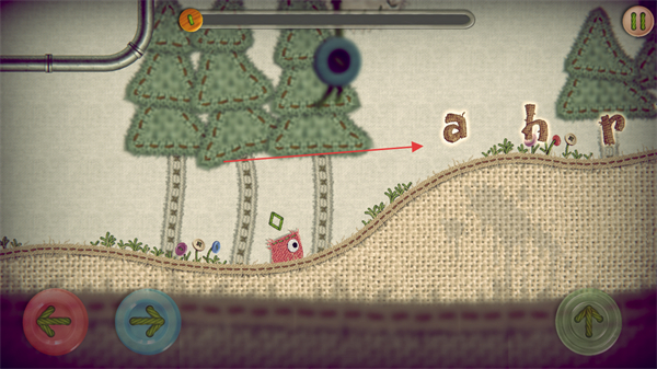 3、繼續(xù)移動(dòng)怪物,躲避障礙并收集更多字母如e,觸發(fā)場景變化。