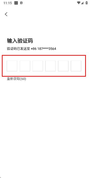 3、在輸入短信驗證碼頁面填寫收到的驗證碼,完成賬號的登錄操作。