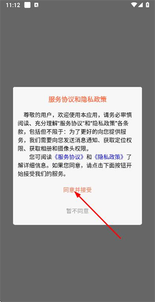 1、在使用協(xié)議隱私政策彈窗中點擊同意按鈕,進入登錄頁面。