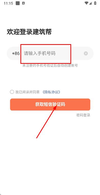 2、在手機登錄頁面填寫手機號,勾選協(xié)議后,點擊獲取驗證碼。
