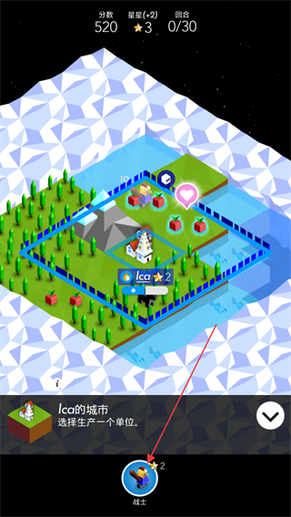 4、在城市生產(chǎn)界面,按照提示選擇生產(chǎn)單位,點(diǎn)擊戰(zhàn)士選項(xiàng)生產(chǎn)戰(zhàn)士單位,用于后續(xù)的探索、擴(kuò)張或戰(zhàn)斗環(huán)節(jié)。