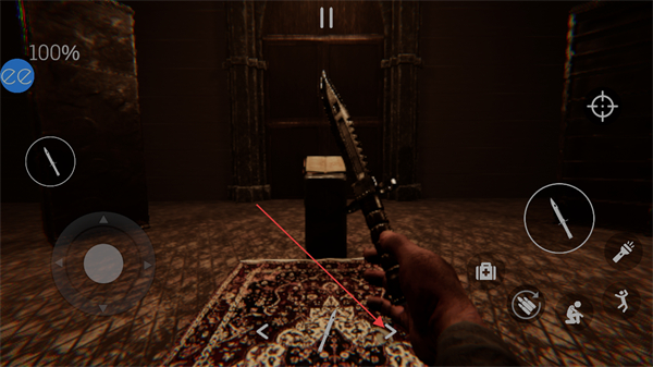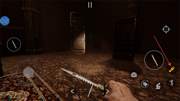 3、當(dāng)場景光線不足時,點(diǎn)擊右側(cè)的手電筒按鈕可開啟光源,提升環(huán)境可見度,便于清晰觀察周圍的可交互道具。