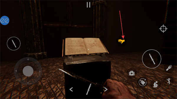 4、當(dāng)靠近場景中的書本類道具時,點(diǎn)擊右側(cè)的拾取圖標(biāo)可與該道具進(jìn)行交互,獲取書本包含的信息,這是收集線索的關(guān)鍵操作之一。