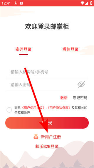 1、打開郵掌柜,在登錄頁面點擊新用戶注冊,進(jìn)入免費注冊頁面。