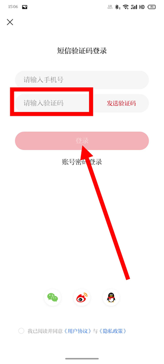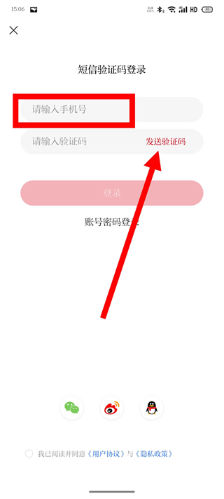 3、在登錄頁面,輸入手機號,點擊發(fā)送驗證碼,獲取短信驗證碼。