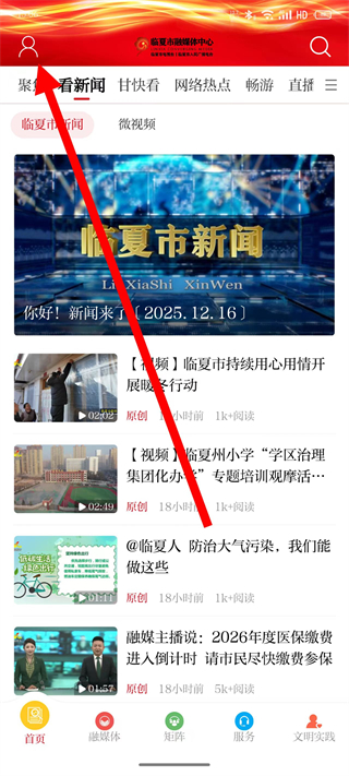 1、打開新臨夏客戶端,點擊左上角的頭像圖標,進入個人頁面。