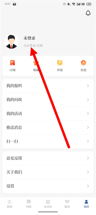 2、在我的頁(yè)面,點(diǎn)擊登錄注冊(cè),進(jìn)入登錄界面。