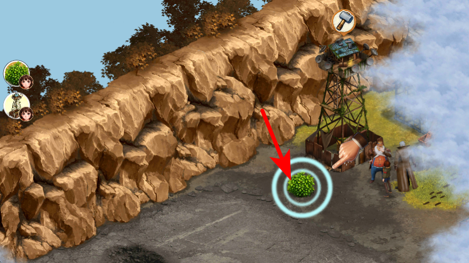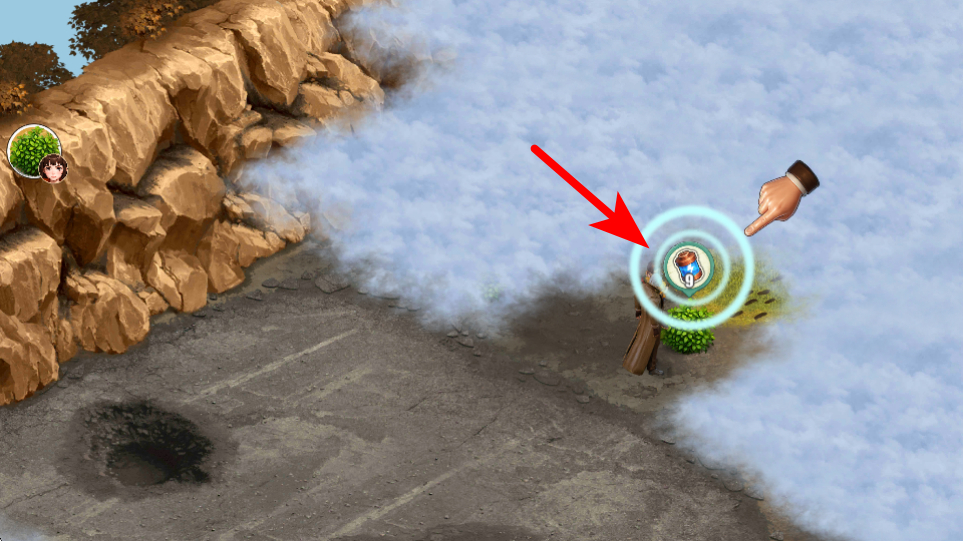 2、互動(dòng)后綠植會(huì)替換為紅色箭頭指向的道具圖標(biāo),點(diǎn)擊即可拾取該道具,存入背包。