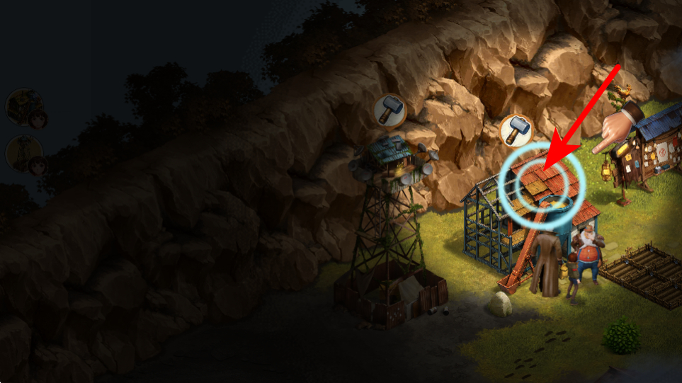 4、在建筑場景中,點(diǎn)擊紅色箭頭指向的建筑區(qū)域,可觸發(fā)與該建筑的互動(dòng)如修復(fù)、探索推進(jìn)劇情。