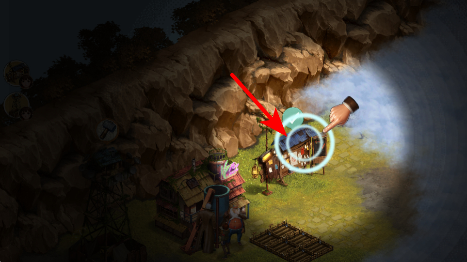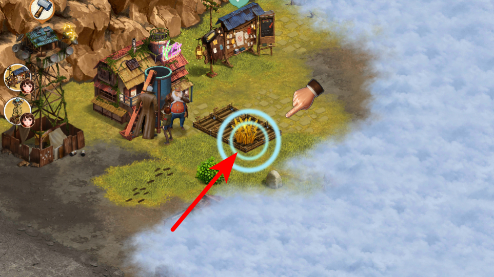4、收獲后點(diǎn)擊紅色箭頭指向的建筑區(qū)域,觸發(fā)與該建筑的互動(dòng)如加工小麥,推進(jìn)后續(xù)流程。