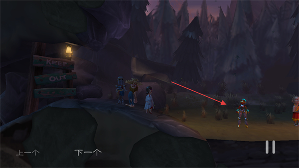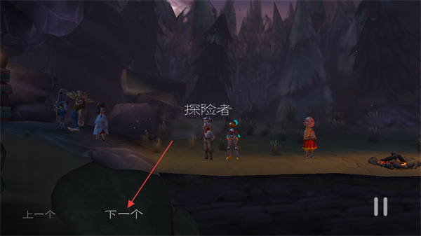 3、點(diǎn)擊下一個(gè)按鈕,切換場(chǎng)景推進(jìn)劇情流程。