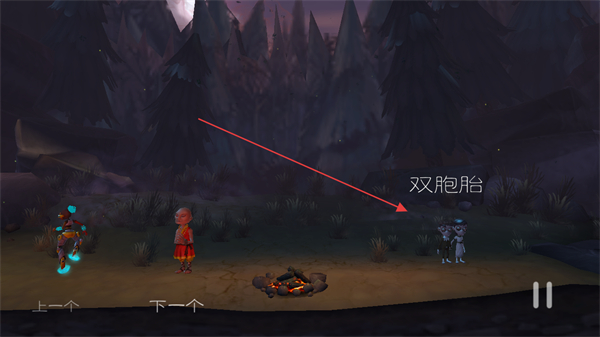 4、查看新場(chǎng)景中的雙胞胎角色提示,繼續(xù)推進(jìn)冒險(xiǎn)劇情。